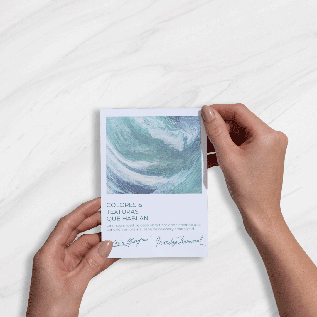 Cuadro Fluid Art de 17,5 x 17,5 cm con marco en madera lacada blanca. Realizado con pintura acrílica sobre lienzo. Cada pieza es única e irrepetible, creada a mano por las artistas Valeria Giagnoni y Maritza Ravanal. Ideal para regalar o dar un toque artístico a cualquier espacio.