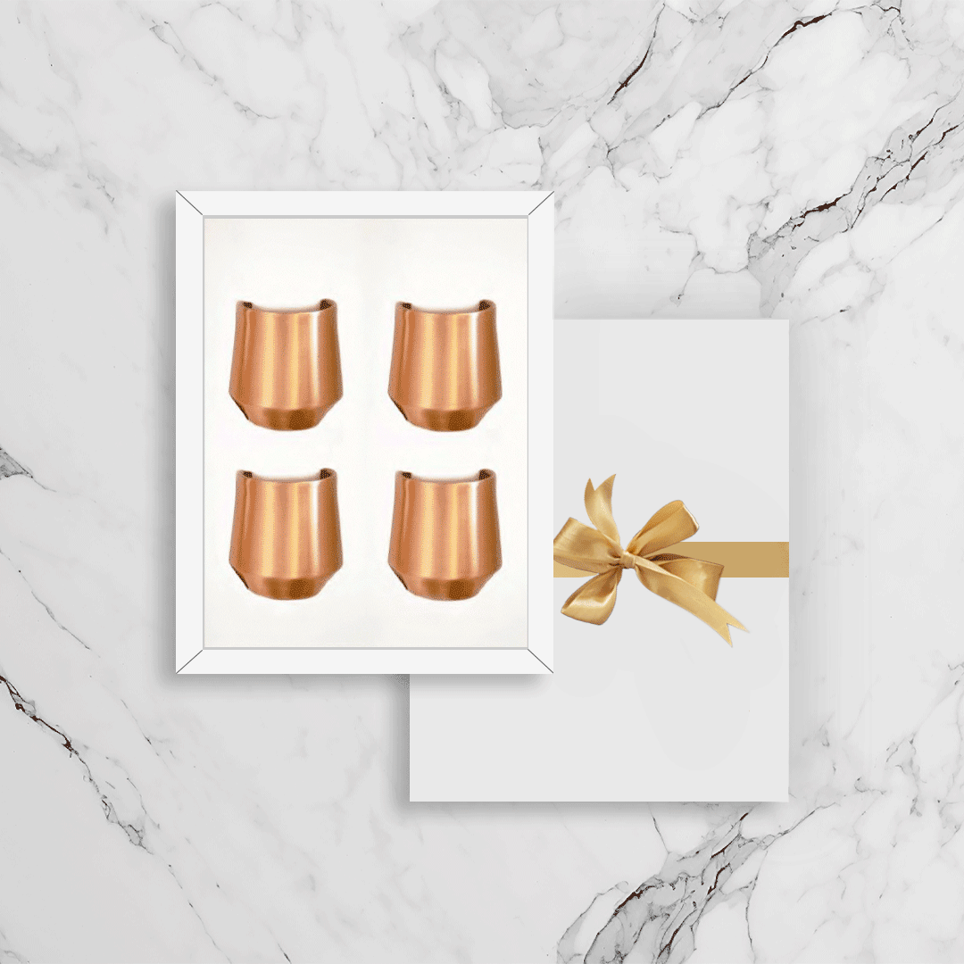 Set de 4 vasos 100% cobre doble pared, hechos a mano. Mantienen tus bebidas frías por más tiempo gracias a su doble pared. Son perfectos para disfrutar un pisco sour o cualquier cóctel.